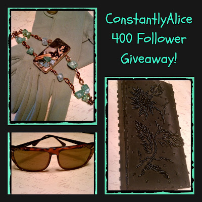 Hooray a giveaway! My facebook page has reached 400 followers :)  I'm so flattered and humbled to have you all sharing in my passion for vintage and crafting with me.  In addition to the mermaid bracelet from my Sirene series that I had originally planned to give away, I am also giving away pretty matching green vintage gloves, a lovely vintage beaded clutch and some great 70's sunglasses.  To enter, simply like ConstantlyAlice on FB and comment that you've done so below the giveaway post.  If you'd like additional entries, you can follow on twitter, follow here on the blog, share this post or favorite the ConstantlyAlice shop on Etsy.  Be sure to leave a separate comment for each!  Contest will run till 7/15.  Good luck!